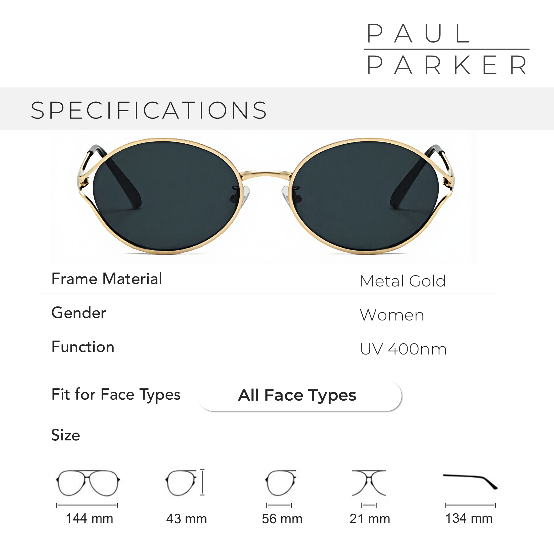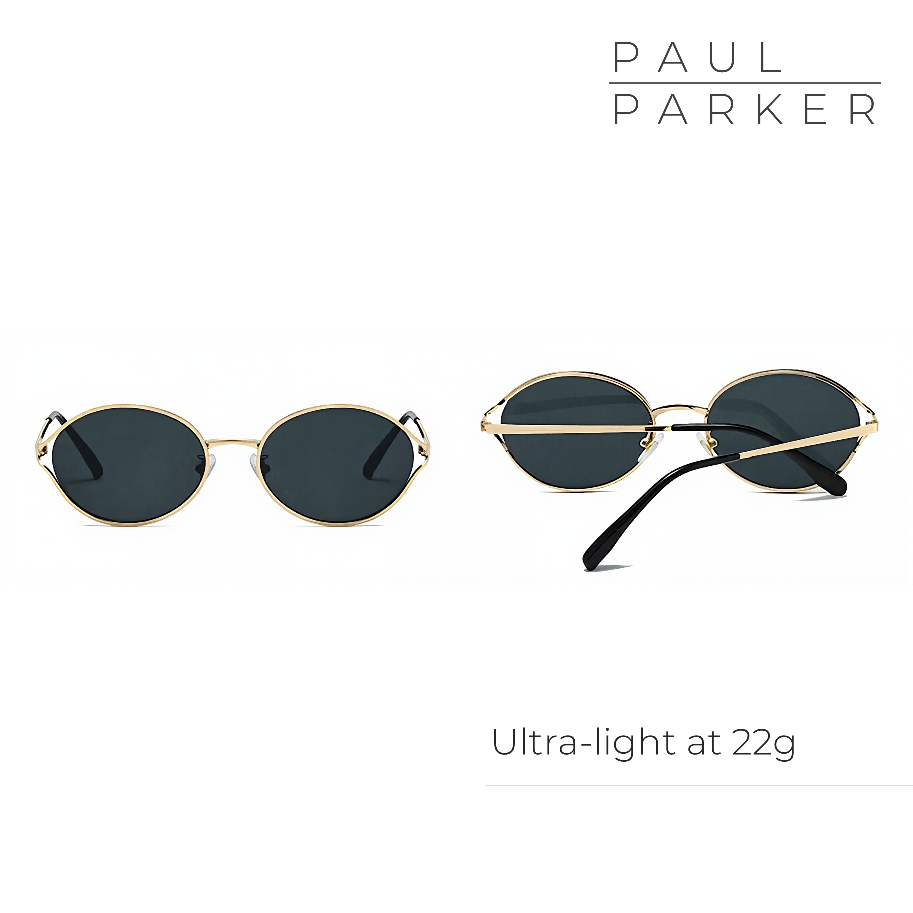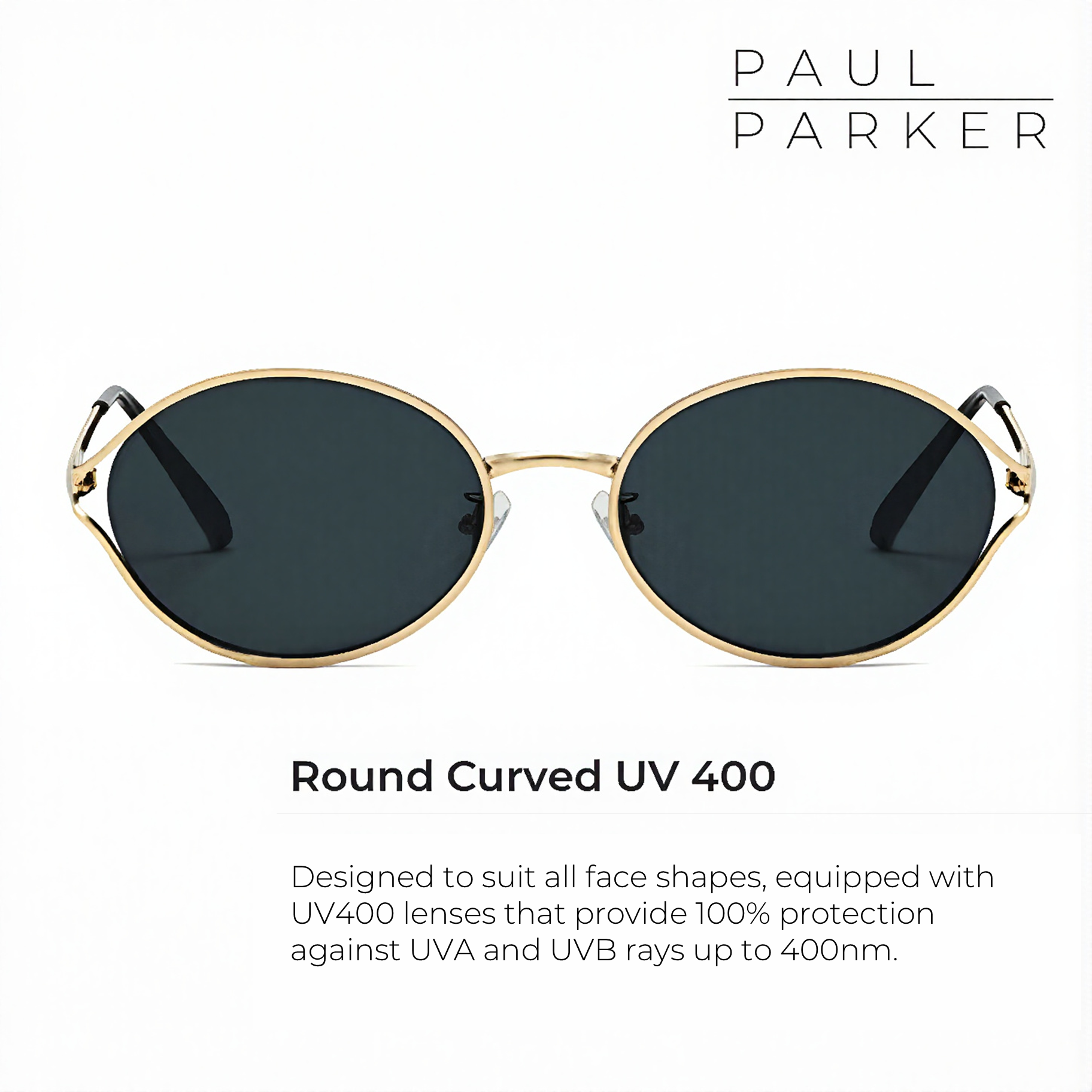 Paul Parker Design Ultra-light Round Minimalist Curved Sunglasses Black UV 400 Protection. Look cool and modern with Paul Parker Design Ultra-light Round Sunglasses. These sunglasses combine a minimalist design with a super light weight of only 22g, suitable for all face shapes and comfortable to wear all day.