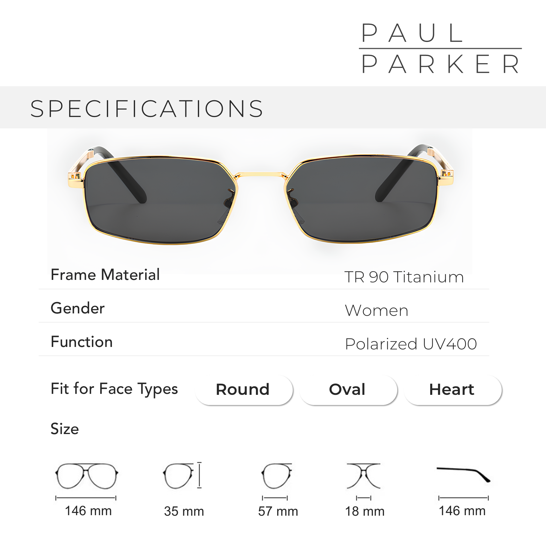 The slim square design is very suitable for round, oval and heart faces. The square Frame adds definition and gives an elegant and modern appearance.