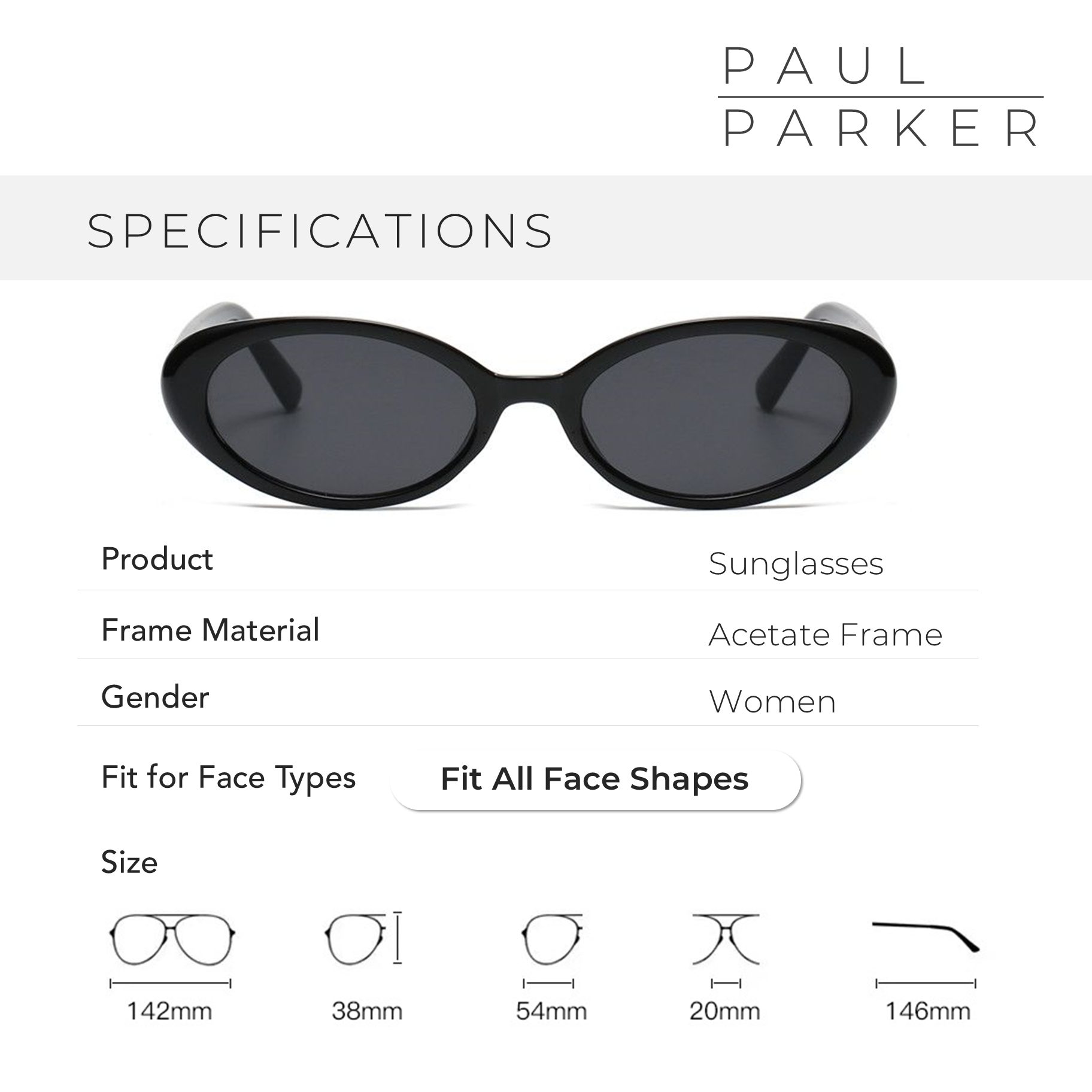Sunglasses designed by Paul Parker S/S edition (Spring/Summer 2024) presents the Paul Parker Fashion House line expansion with an elegant and modern retro design. The black acetate frame is specially designed to suit all face shapes. With black lenses, these attractive glasses will perfectly complement your every appearance.